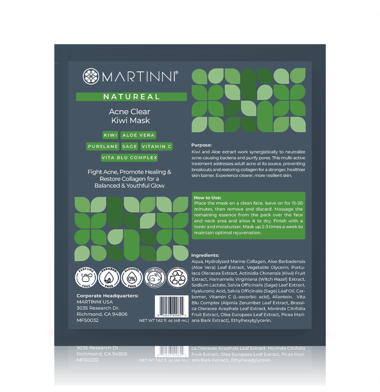 Purify and rejuvenate your skin with our Acne Clear Kiwi Mask. Kiwi and Aloe extract work synergistically to neutralize acne-causing bacteria and purify pores. This multi-active treatment addresses adult acne at its source, preventing breakouts and restoring collagen for a stronger, healthier skin barrier. Experience clearer, more resilient skin.