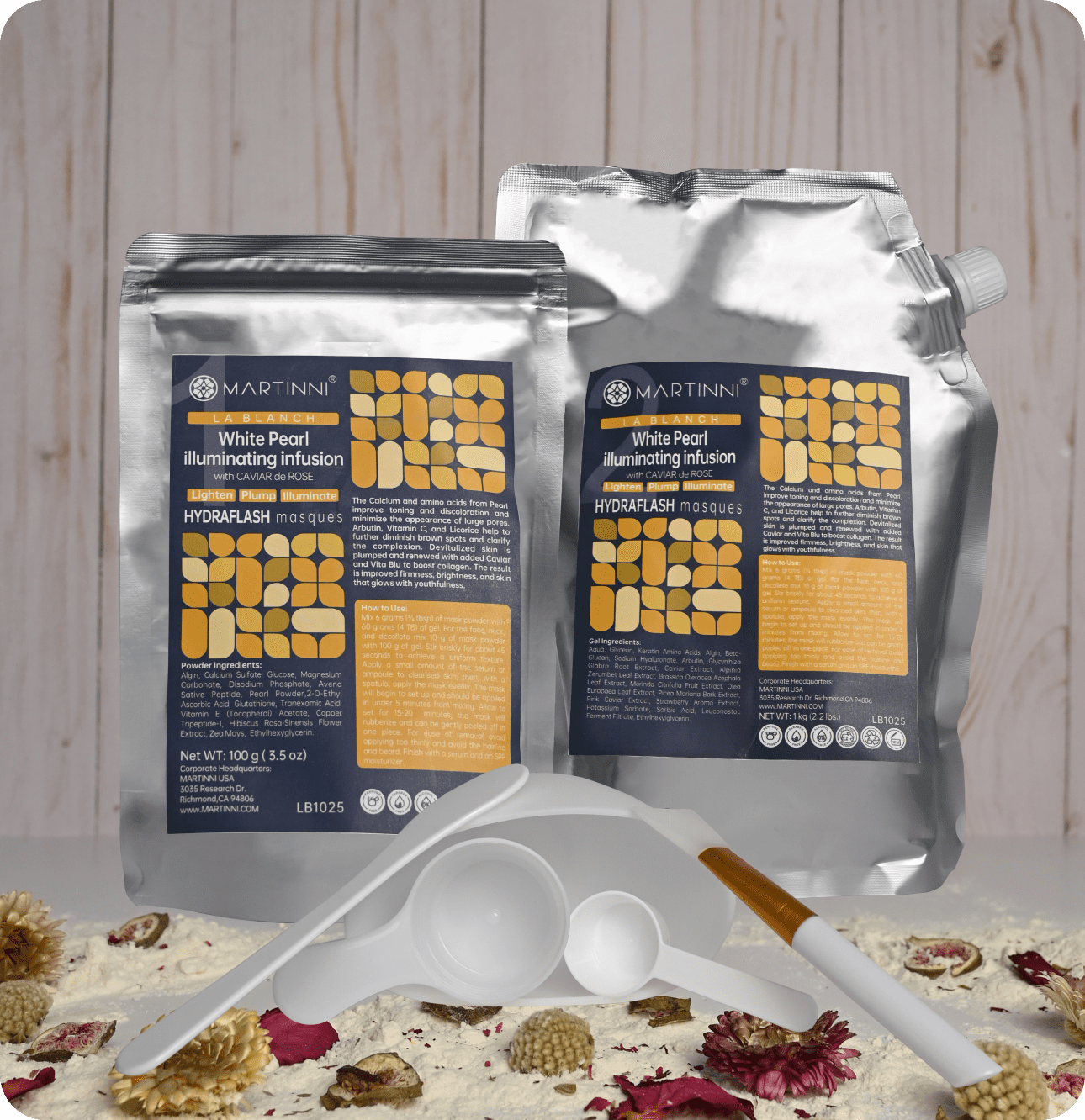 Upgrade your spa offerings with the White Pearl Illuminating Infusion Hydraflash Masque. This advanced treatment targets discoloration and large pores while providing deep hydration. Infused with pearl extract, caviar, and vitamins, it firms and brightens devitalized skin, making it a valuable addition to your treatment menu.